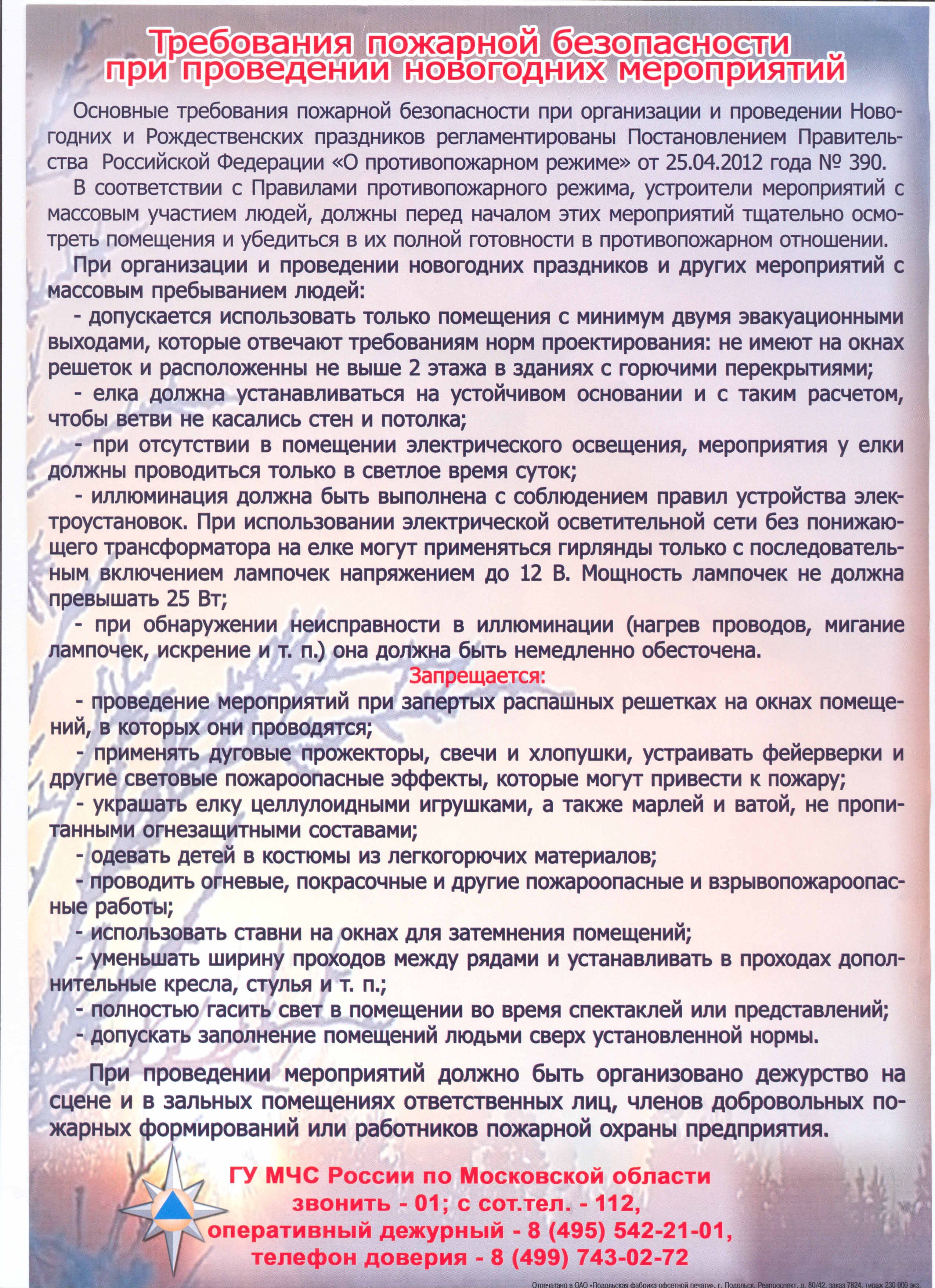 Требования пожарной безопасности при проведении Новогодних мероприятий