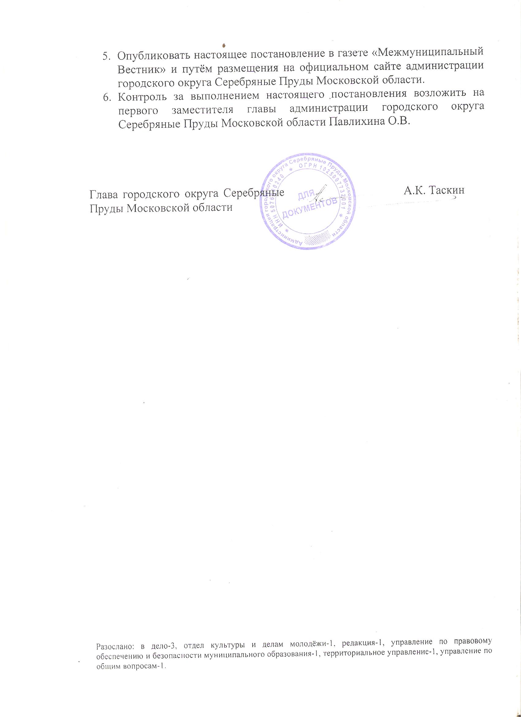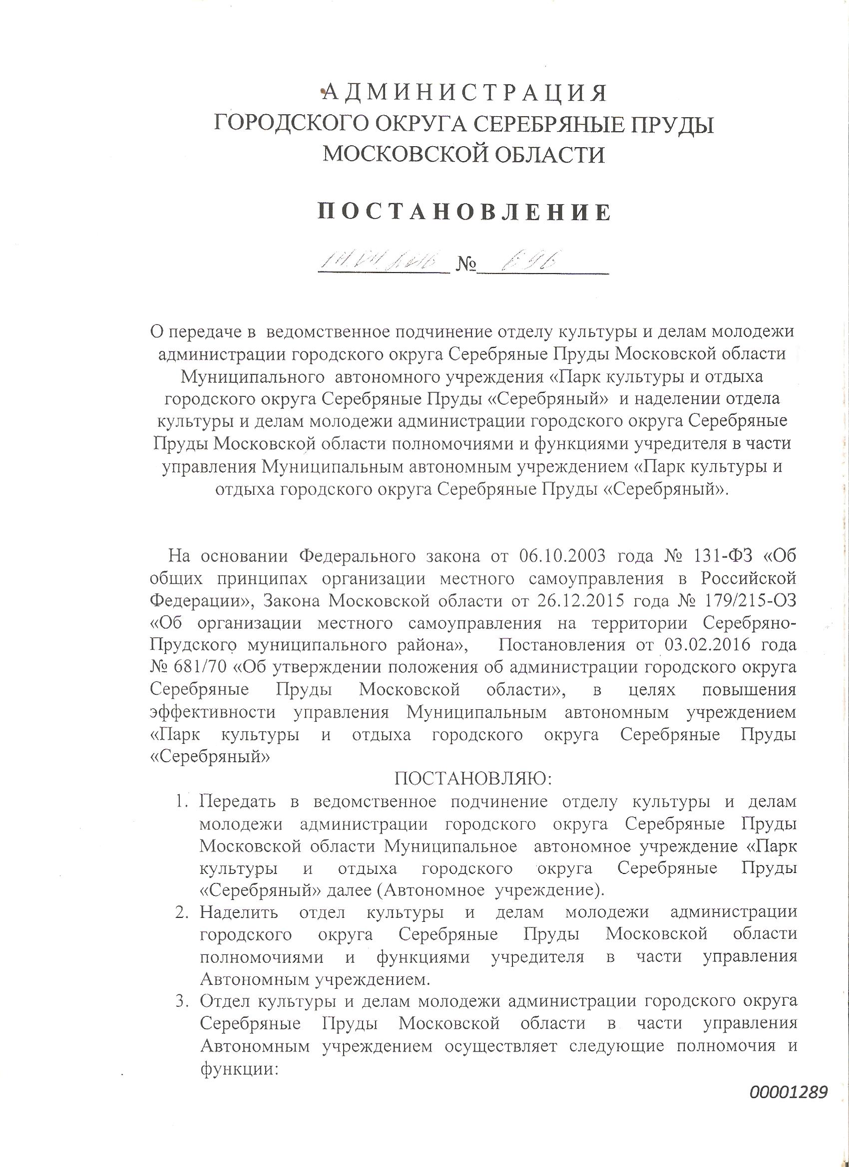 О передаче в ведомственное подчинение отделу культуры и делам молодежи администрации городского округа Серебряные Пруды Московской области Муниципального автономного учреждения «Парк культуры и отдыха городского округа Серебряные Пруды «Серебряный» и наде