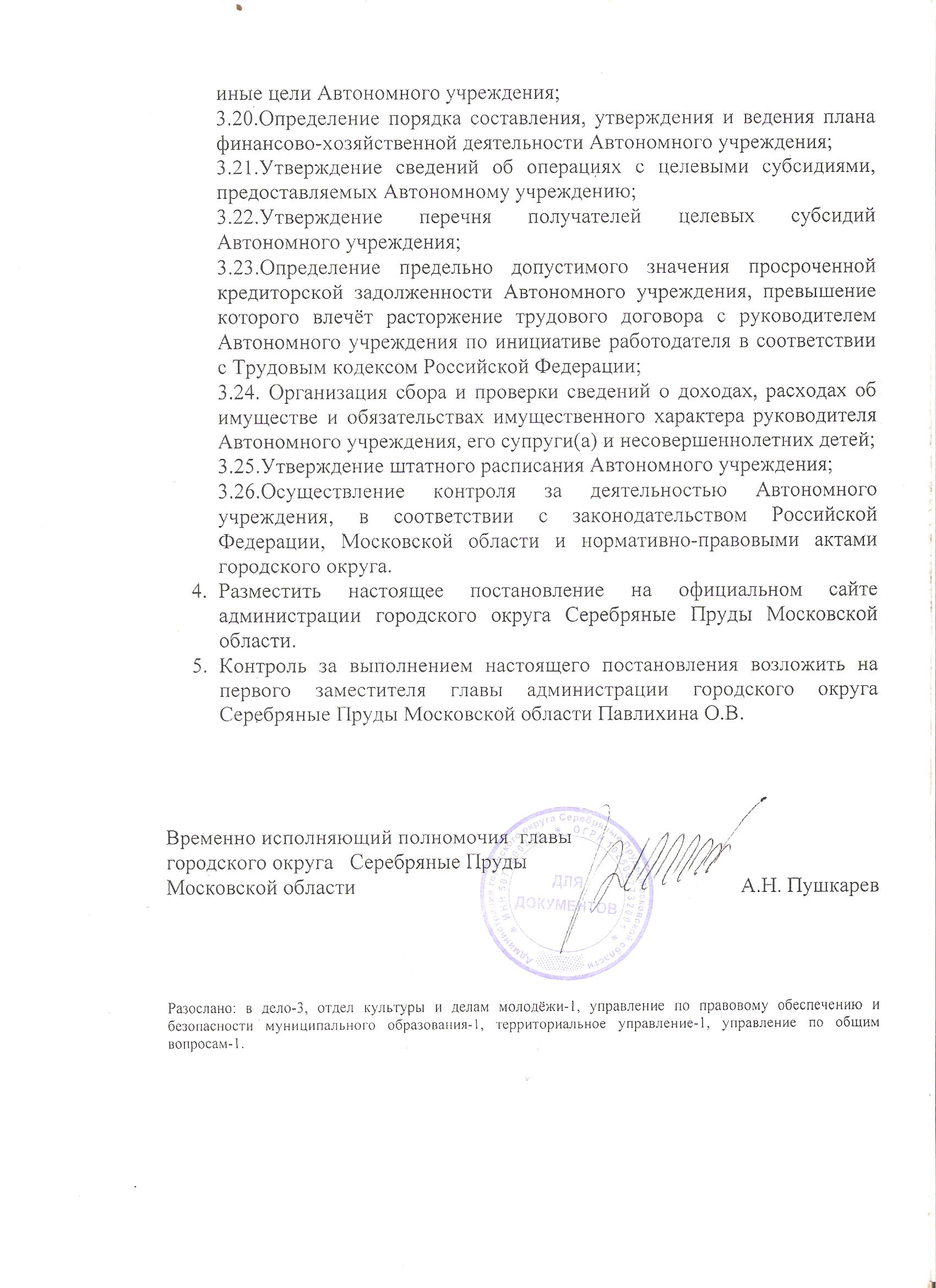 О создании Наблюдательного совета Муниципального автономного учреждения «Парк культуры и отдыха городского округа Серебряные Пруды «Серебряный», утверждении Положения о Наблюдательном совете Муниципального автономного учреждения «Парк культуры и отдыха го