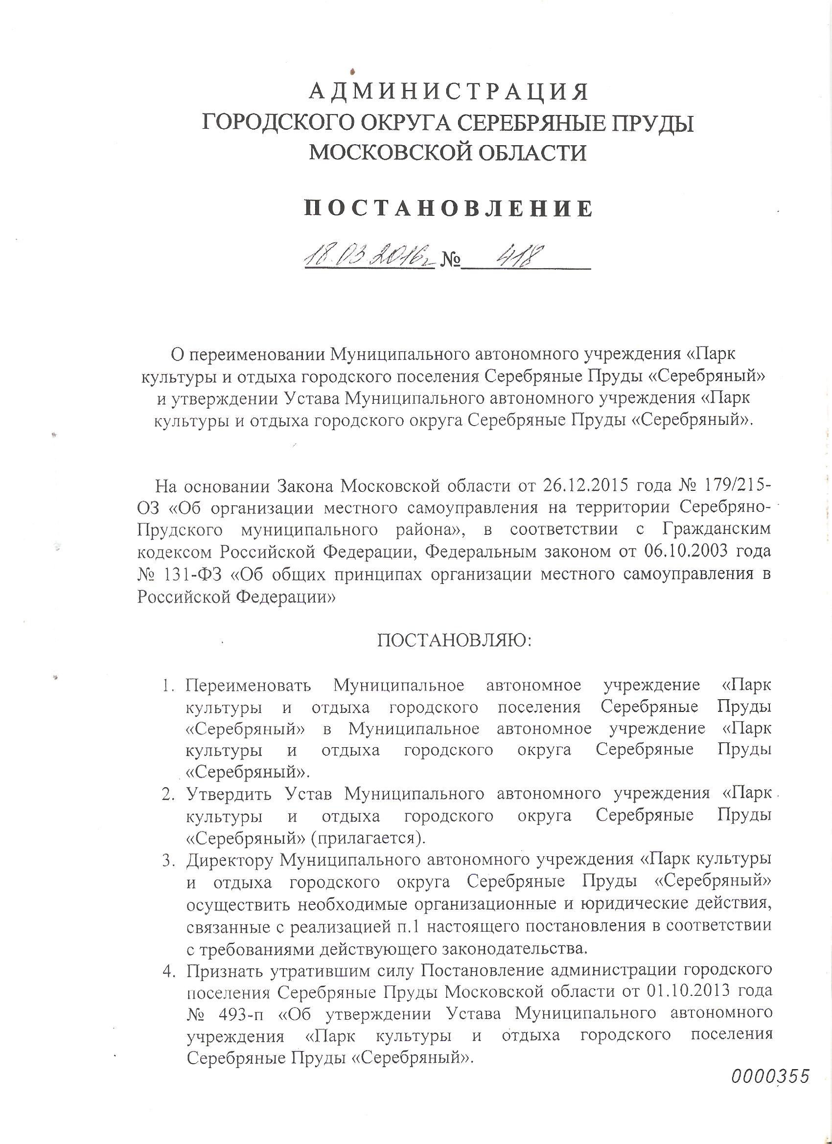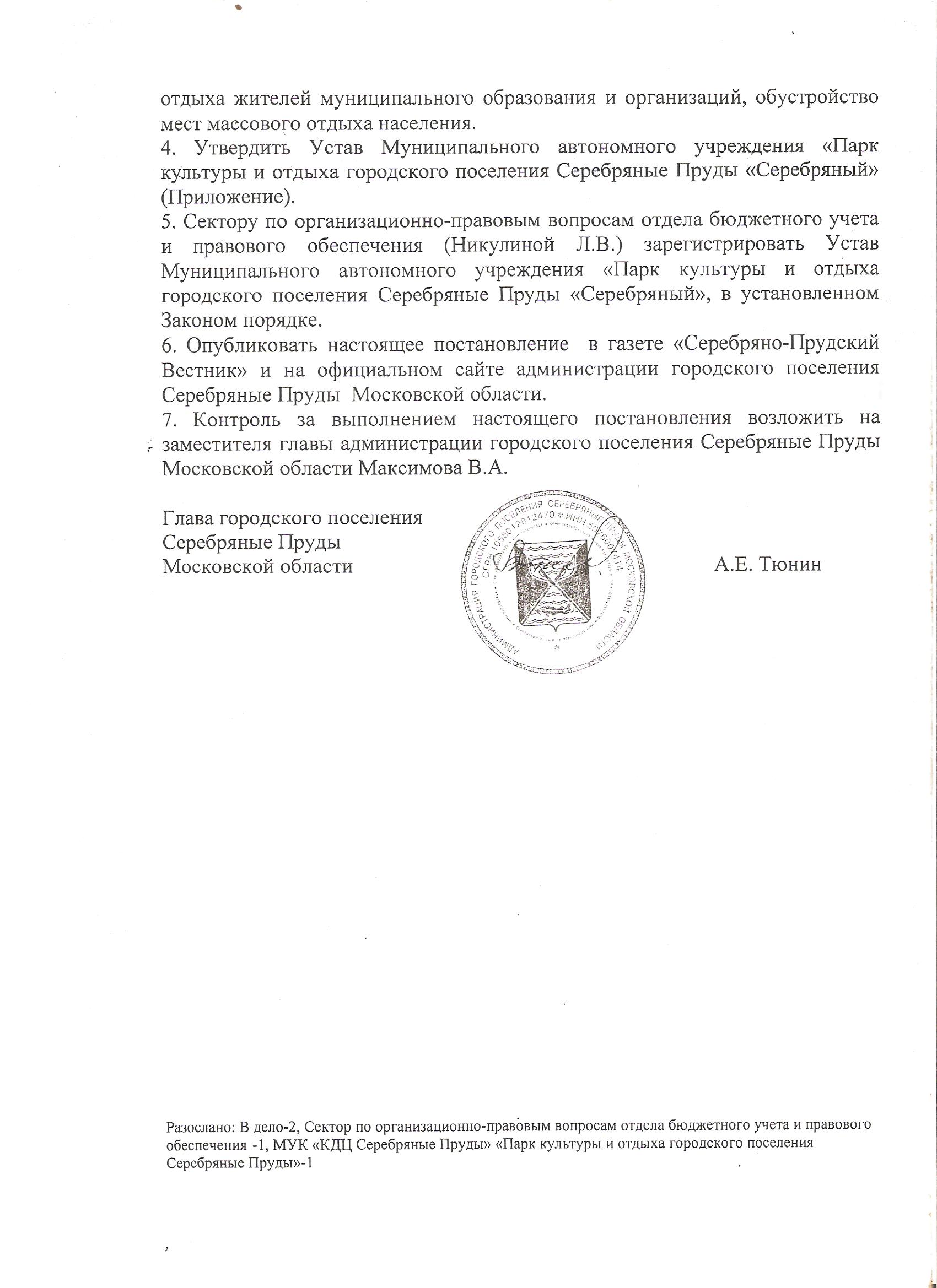 О переименовании Муниципального автономного учреждения «Парк культуры и отдыха городского поселения Серебряные Пруды «Серебряный» и утверждении Устава Муниципального автономного учреждения «Парк культуры и отдыха городского округа Серебряные Пруды «Серебр