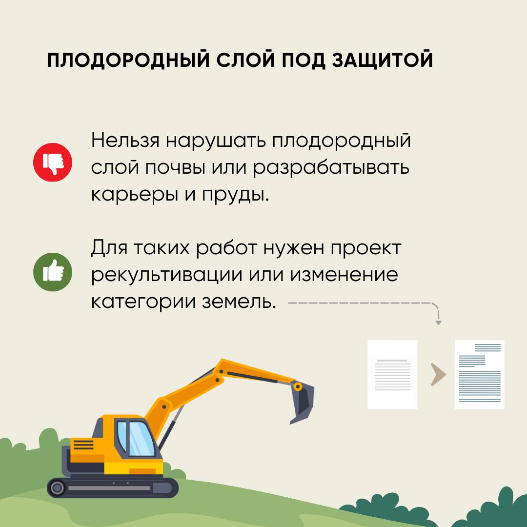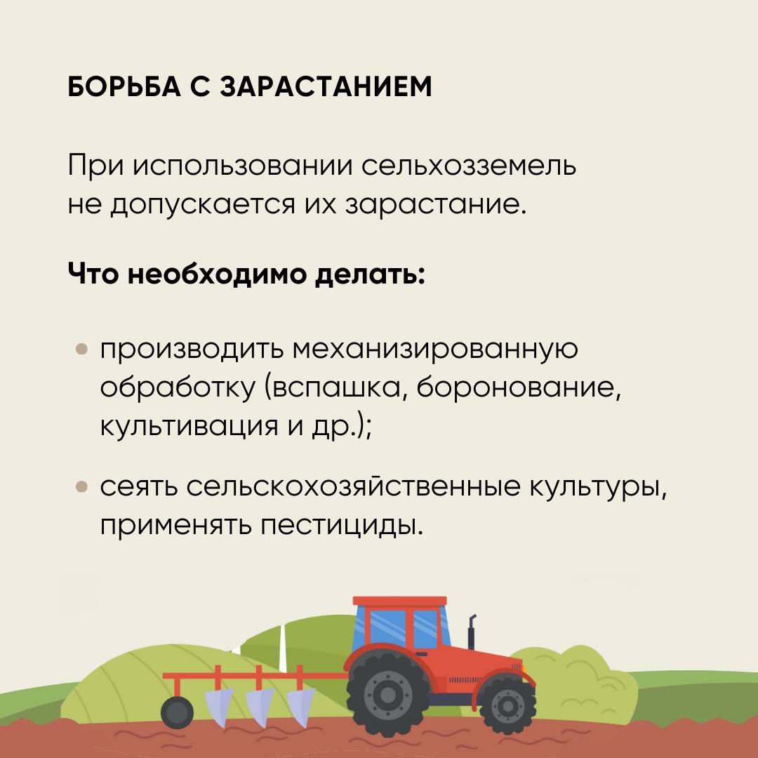 Что нужно делать, чтобы использовать сельхозземли без нарушений. Чтобы избежать нарушений и штрафов, важно соблюдать правила использования земель сельскохозяйственного назначения. Россельхознадзор собрал главные рекомендации для контролируемых лиц в полезных карточках. Кроме того, ознакомиться с руководством по соблюдению обязательных требований к использованию и охране объектов земельных отношений можно на сайте Россельхознадзора по ссылке https://fsvps.gov.ru/files/rukovodstvo-posobljudeniju-juridicheskimi-licami-individualnymi-predprinimateljami-grazhdanamiorganami-gosudarstvennoj-vlasti-i-organami-mestnogo-samoupravlenijaobjazatelnyh-trebovanij-k-ispolzov-2/.