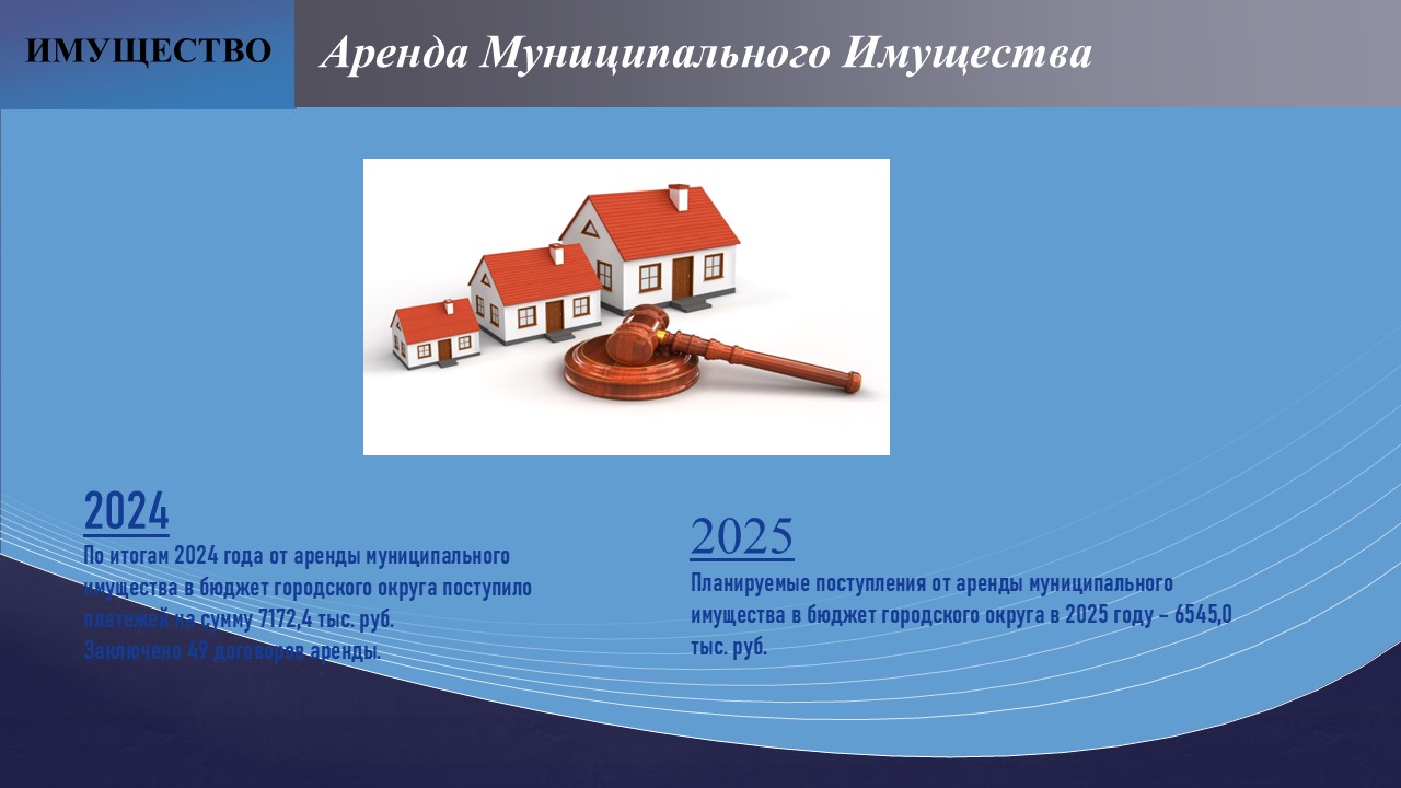 Планируемые поступления от аренды муниципального имущества в бюджет городского округа в 2025 году – 6545,0 тыс. руб. <br>